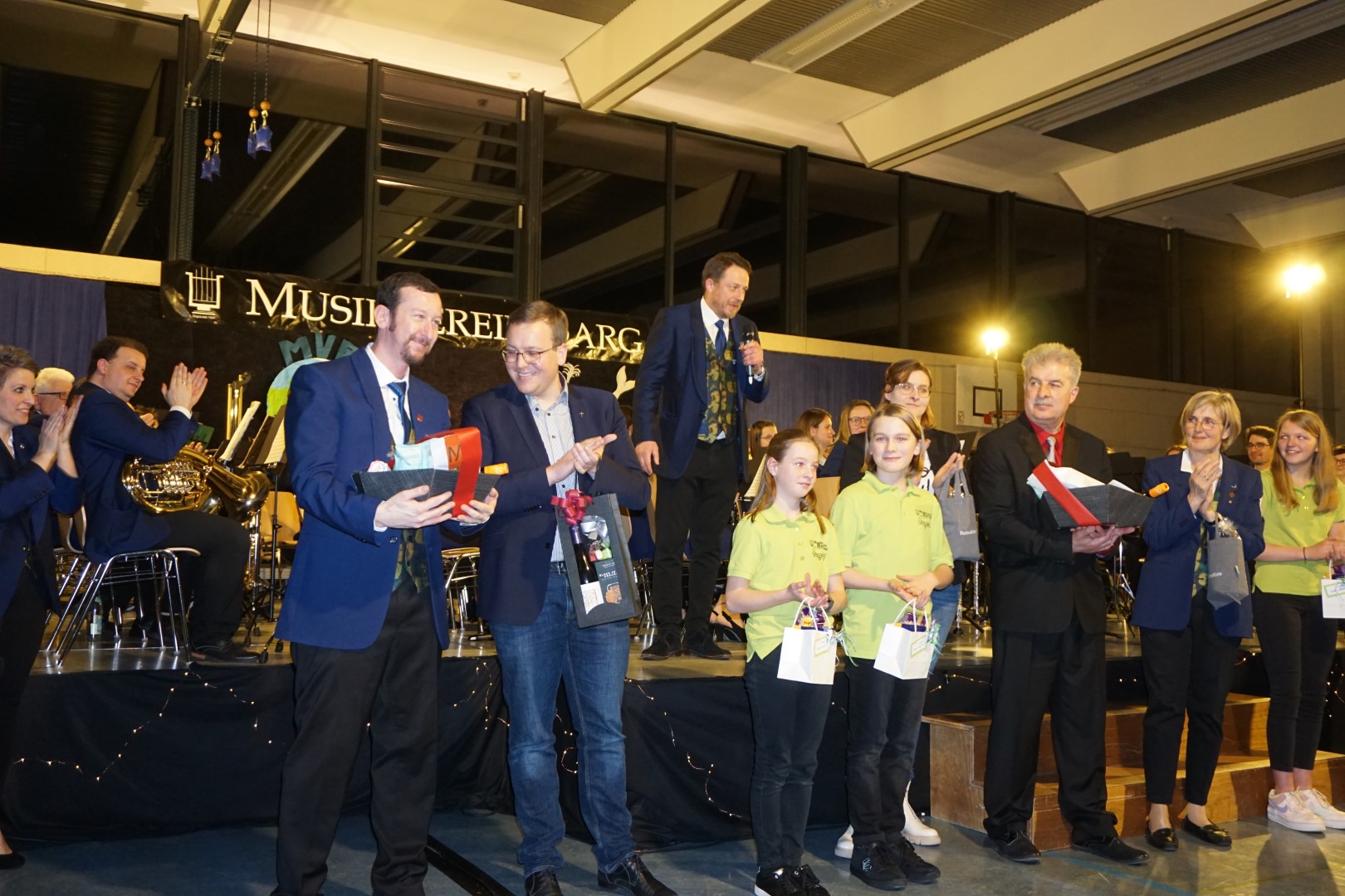 Im Anschluss an die Pause, in der für das leibliche Wohl bestens gesorgt wurde, betrat das Junge Orchester die Bühne. Diese temporäre Zusammensetzung aus aktiven Jungmusikern wird am 24. und 25. Juni in Balingen beim Wertungsspiel beim Musikfest „BwMusix“ teilnehmen. Martin Rebholz, der die musikalische Leitung der Gruppierung übernommen hat, nutzte die Chance das Orchester bei der Konzertaufführung bereits optimal auf das bevorstehende Wertungsspiel einzustimmen.